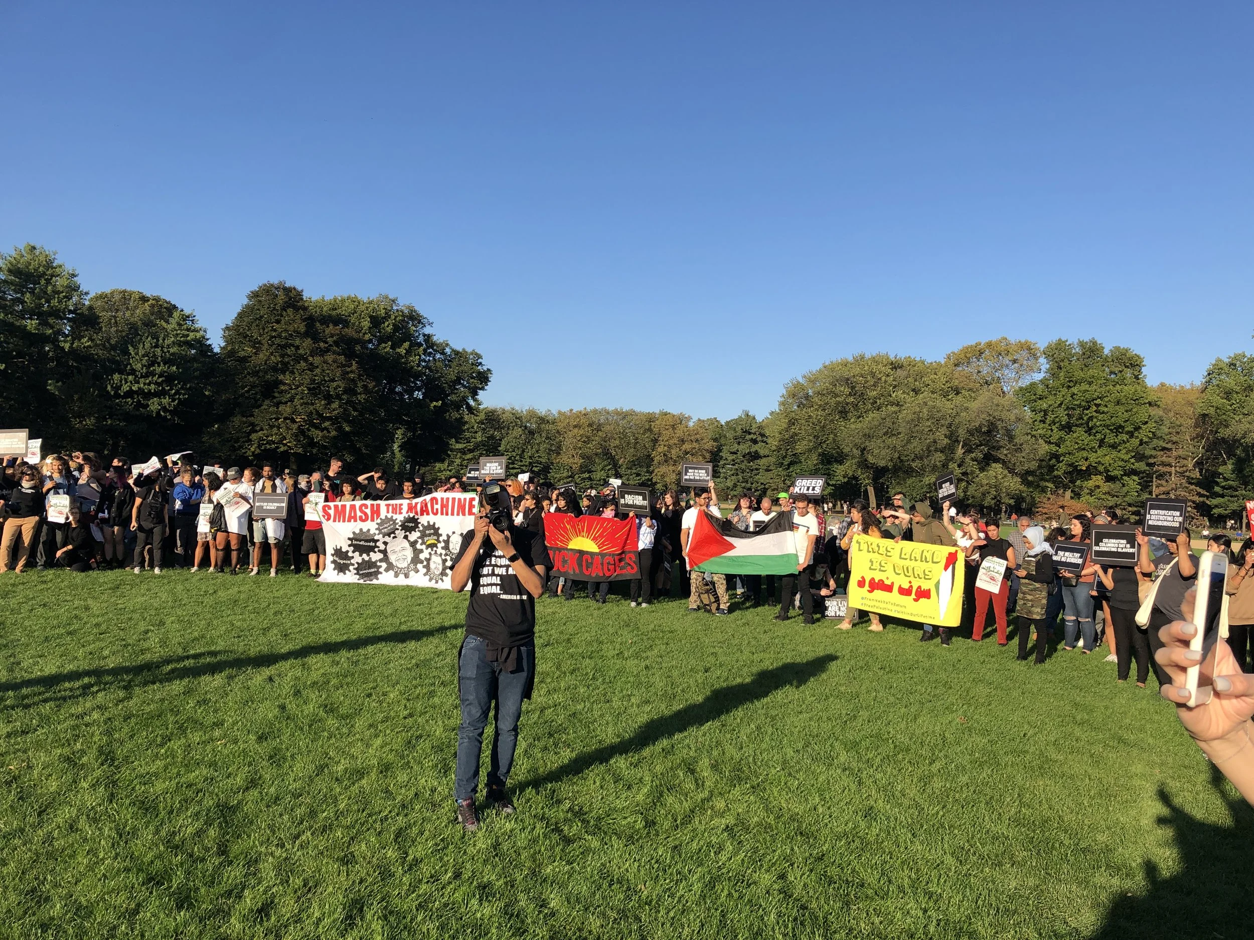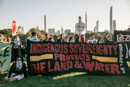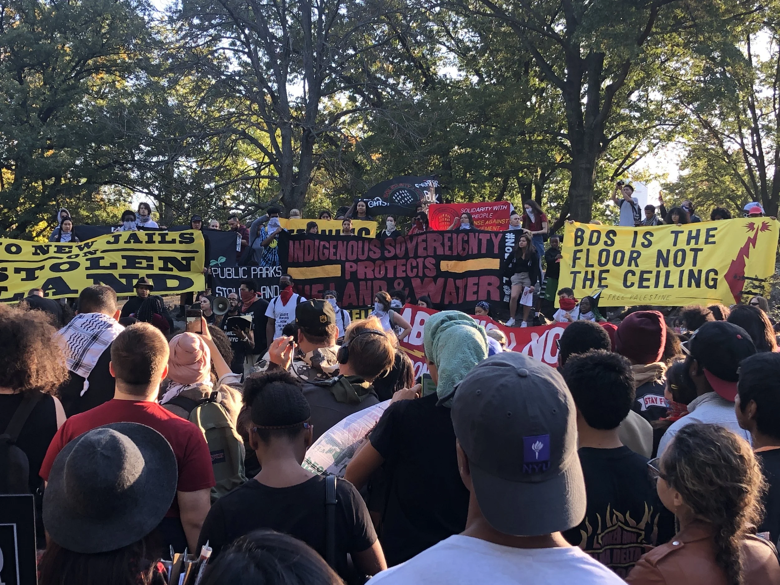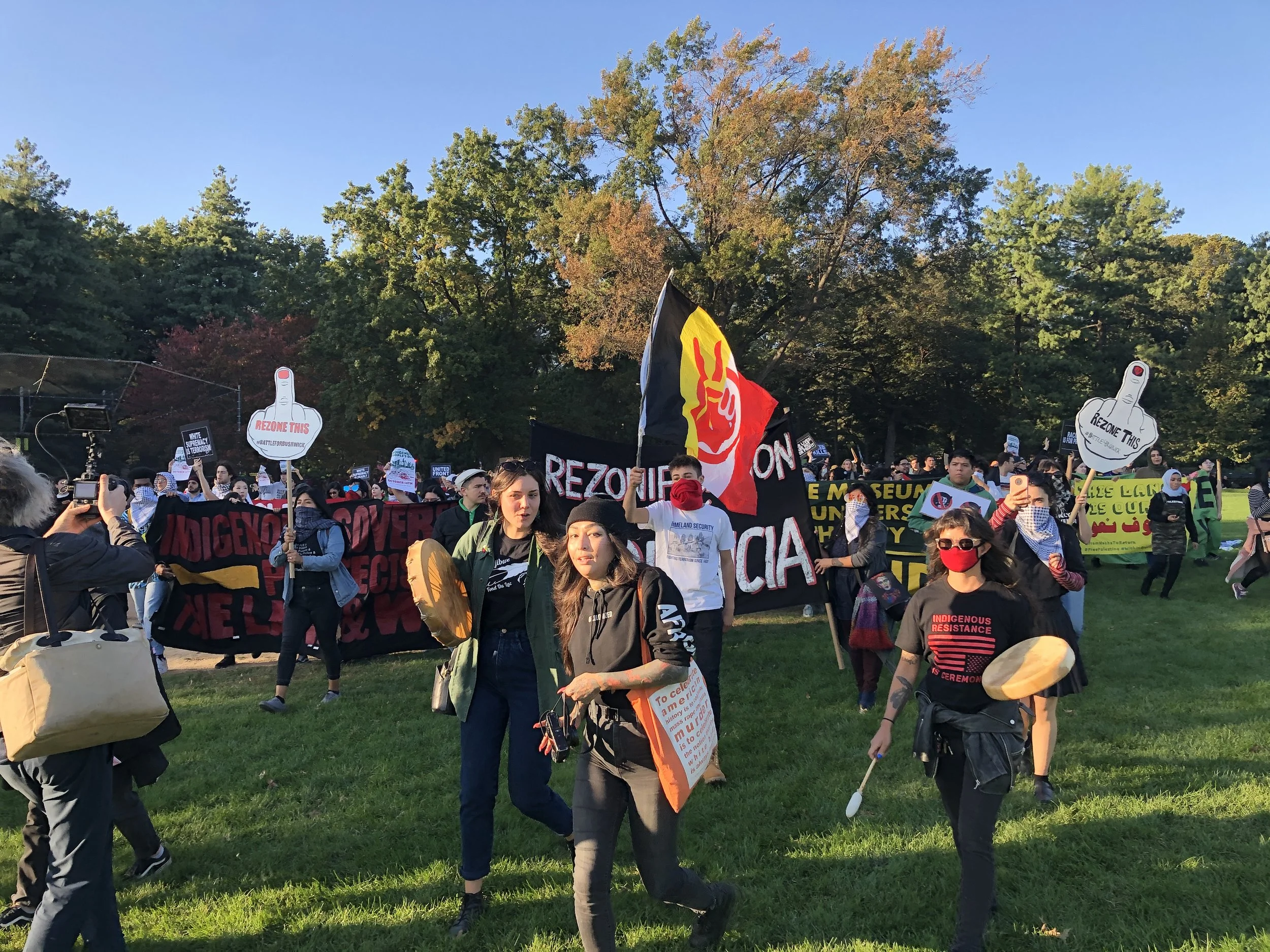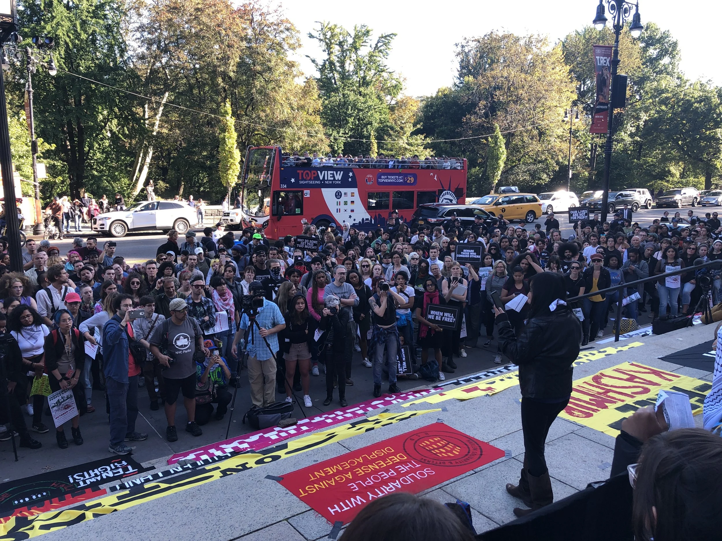 It has been four years since our communities converged at this museum. Then, we put forth the following demands: Rename the Day, Respect the Ancestors, Remove the Statue. After three annual gatherings, none of these demands have been met. The museum remains silent about calls for the replacement of Columbus Day with Indigenous People’s Day, which has been enacted by dozens of cities and states around the country. The museum is annotating some of its displays, but it uses these as token gestures to insulate itself from calls to overhaul the framework of the museum as a whole. The museum has claimed it has no jurisdiction over the Roosevelt monument. Yet it has installed an educational plaque on the structure asking its viewers to consider “both sides” of the genocidal history it represents, perfectly in keeping with the recommendations by the city’s Monument Commission, which voted to re-sanctify both the Roosevelt monument and the widely despised Columbus monument at 59th street. This museum is maintained largely by taxpayers and it stands on “public” land, which we know is occupied ancestral territory of the Lenape. Yet the institution has failed to respond to the concerns voiced by the diverse communities of the city that it claims to represent and serve. On this Indigenous People’s Day, we declare our intent to intensify the crisis of legitimacy faced by this institution. We now highlight the presence on the board of figures like Richard Lefrak, one of the wealthiest real-estate predators in New York, and a donor to the 2020 campaign of Donald Trump; Rebekah Mercer, a primary architect of the ascendency of Trump in 2016; Jacklyn Bezos, mother of Amazon CEO Jeff Bezos, and even the great-grandson of Theodore Roosevelt himself. Whether conservative or liberal in their political outlook, those profiteering from genocide, displacement, dispossession, and incarceration should fear our movement as it grows. Decolonization, Abolition, Anti-Imperialism, and Anti-Capitalism inform our work and animate our desires, which point far beyond the museum and extend to the structures of power and wealth at the city at large.