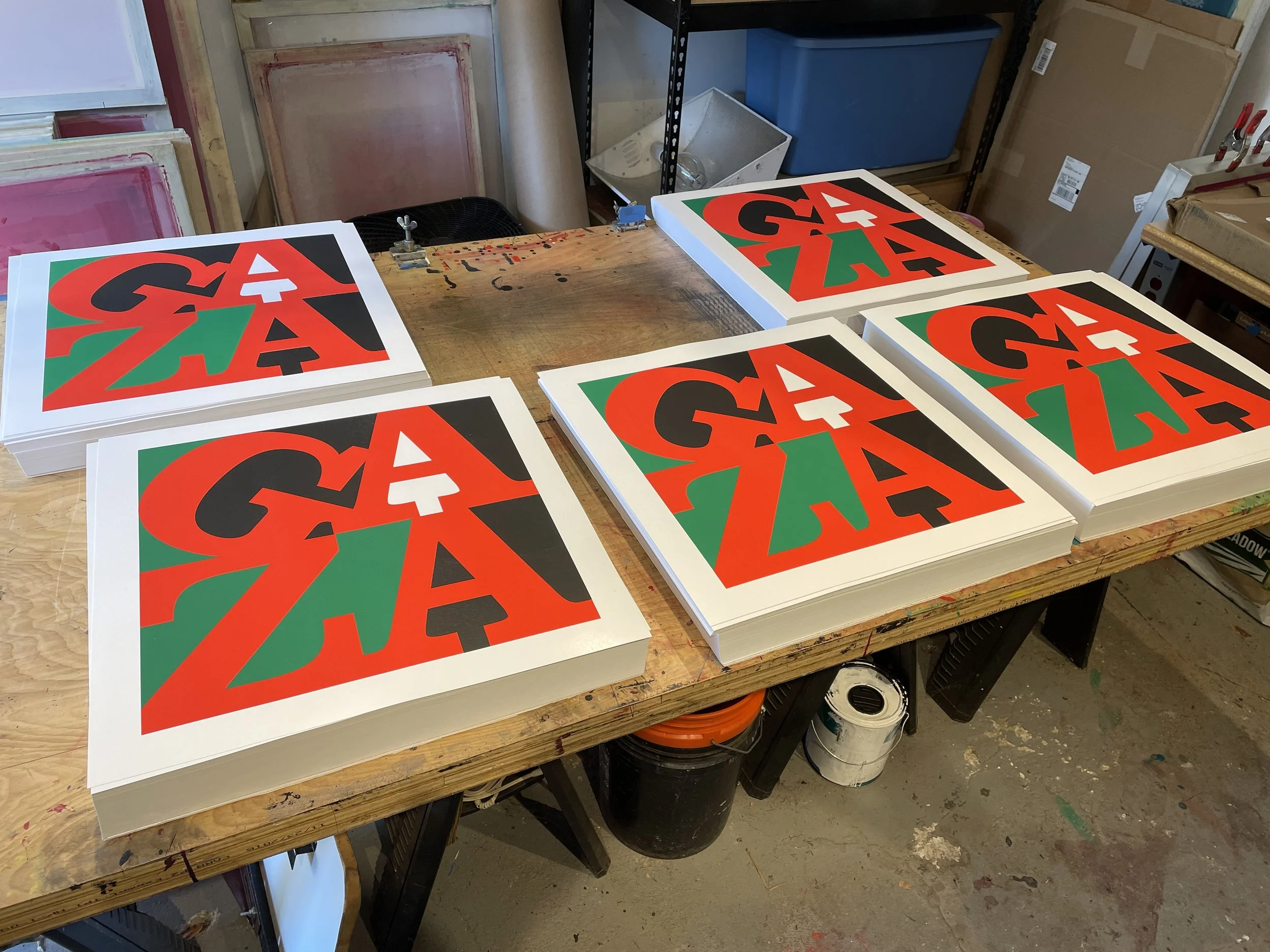 My “GAZA Love” screen print was more influenced by General Idea’s AIDS piece and Rage Against The Machine’s “Renegades” album cover than Robert Indiana. However I realize neither transgression would have been possible without Indiana’s iconic LOVE.