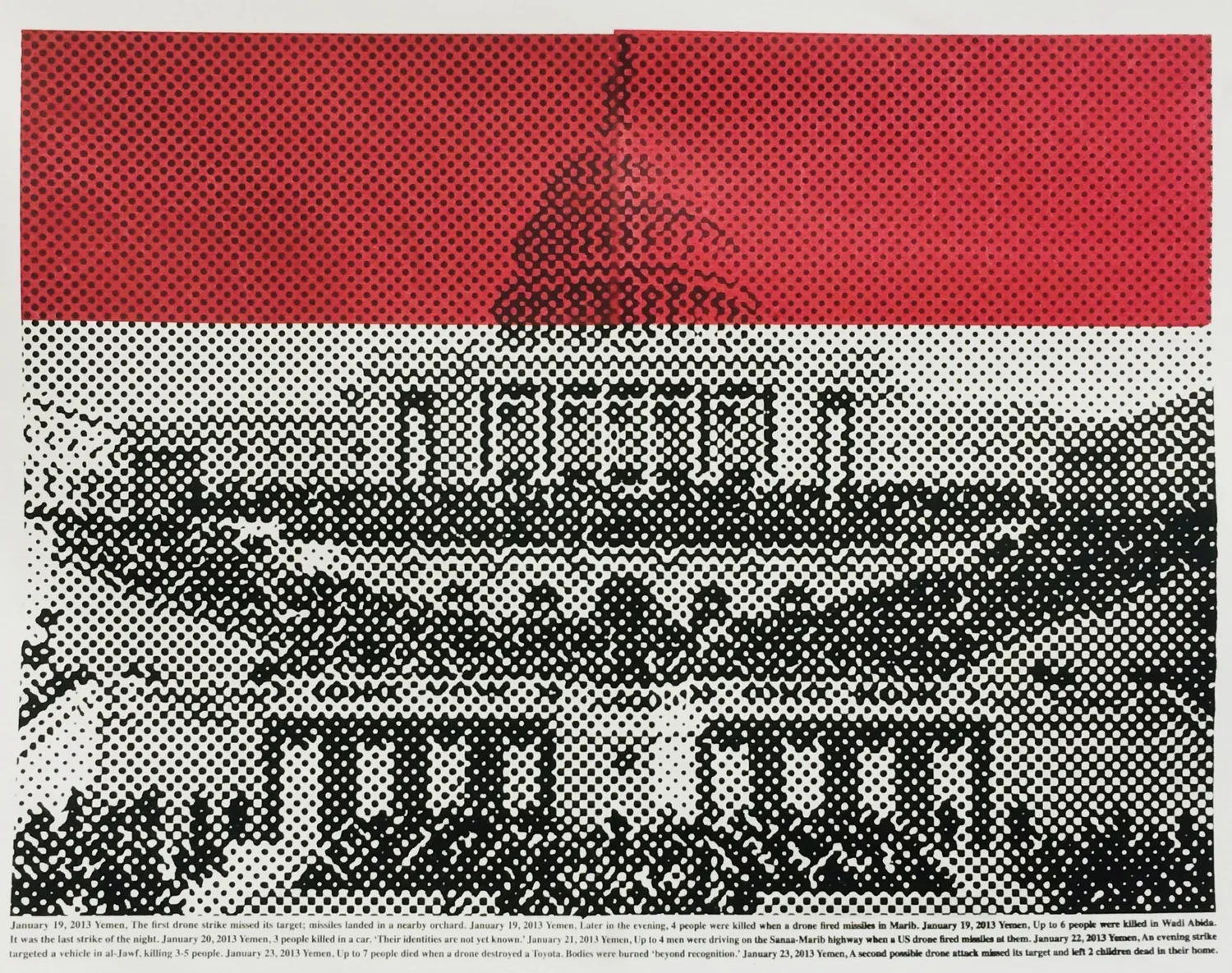 The first drone strike missed its target; missiles landed in a nearby orchard. January 19, 2013 Yemen. Later in the evening, 4 people were killed when a drone fired missiles in Marib. January 19, 2013 Yemen. Up to 6 people were killed in Wadi Abida. It was the last strike of the night. Inauguration Day, January 20, 2013 Yemen. 3 people killed in a car. 'Their identities are not yet known.' January 21, 2013 Yemen. Up to 4 men were driving on the Sanaa-Marib highway when a US drone fired missiles at them. January 22, 2013 Yemen. An evening strike targeted a vehicle in al-Jawf, killing 3-5 people. January 23, 2013 Yemen. Up to 7 people died when a drone destroyed a Toyota. Bodies were burned 'beyond recognition.' January 23, 2013 Yemen. A second possible drone attack missed its target and left 2 children dead in their home.