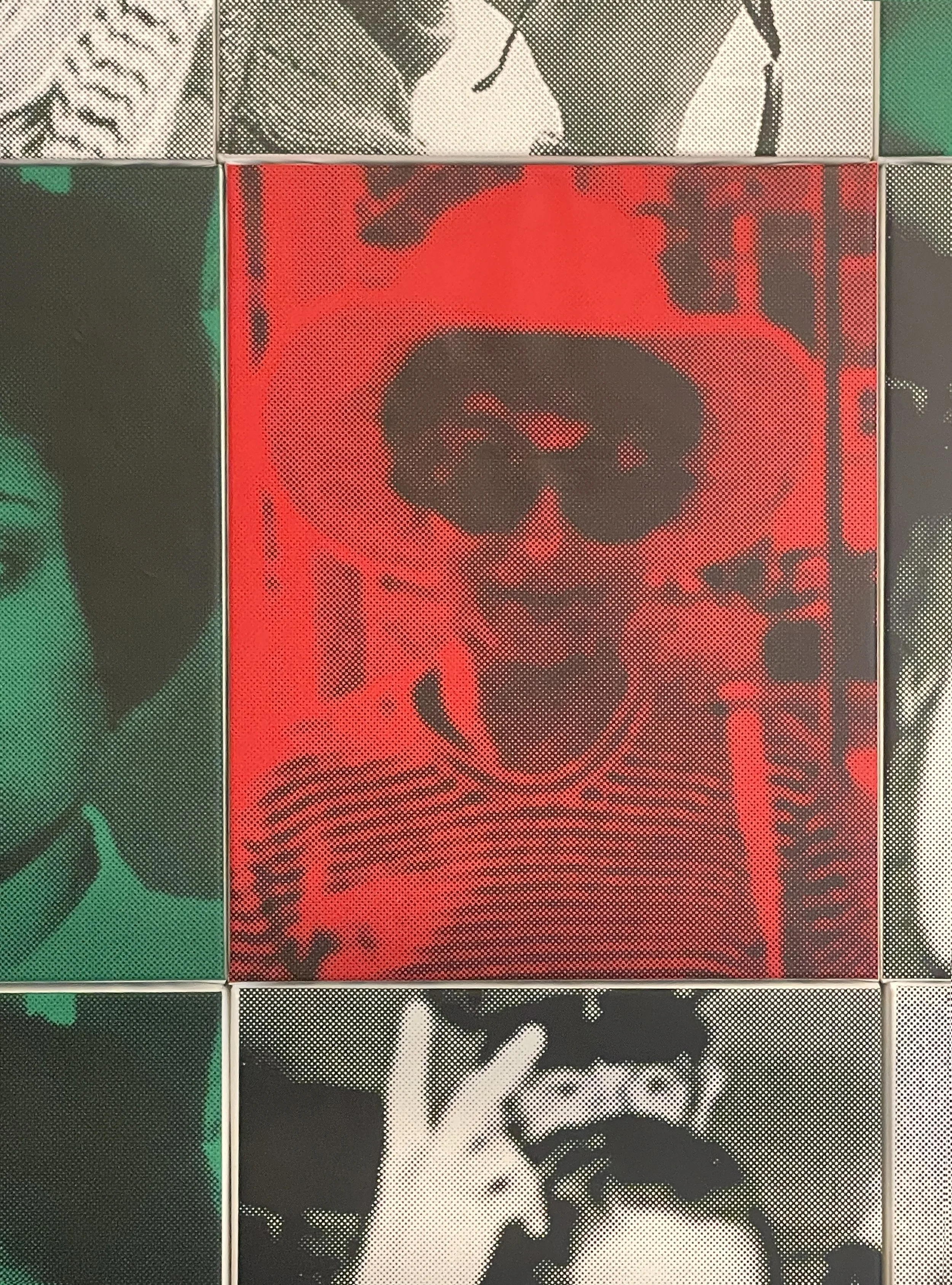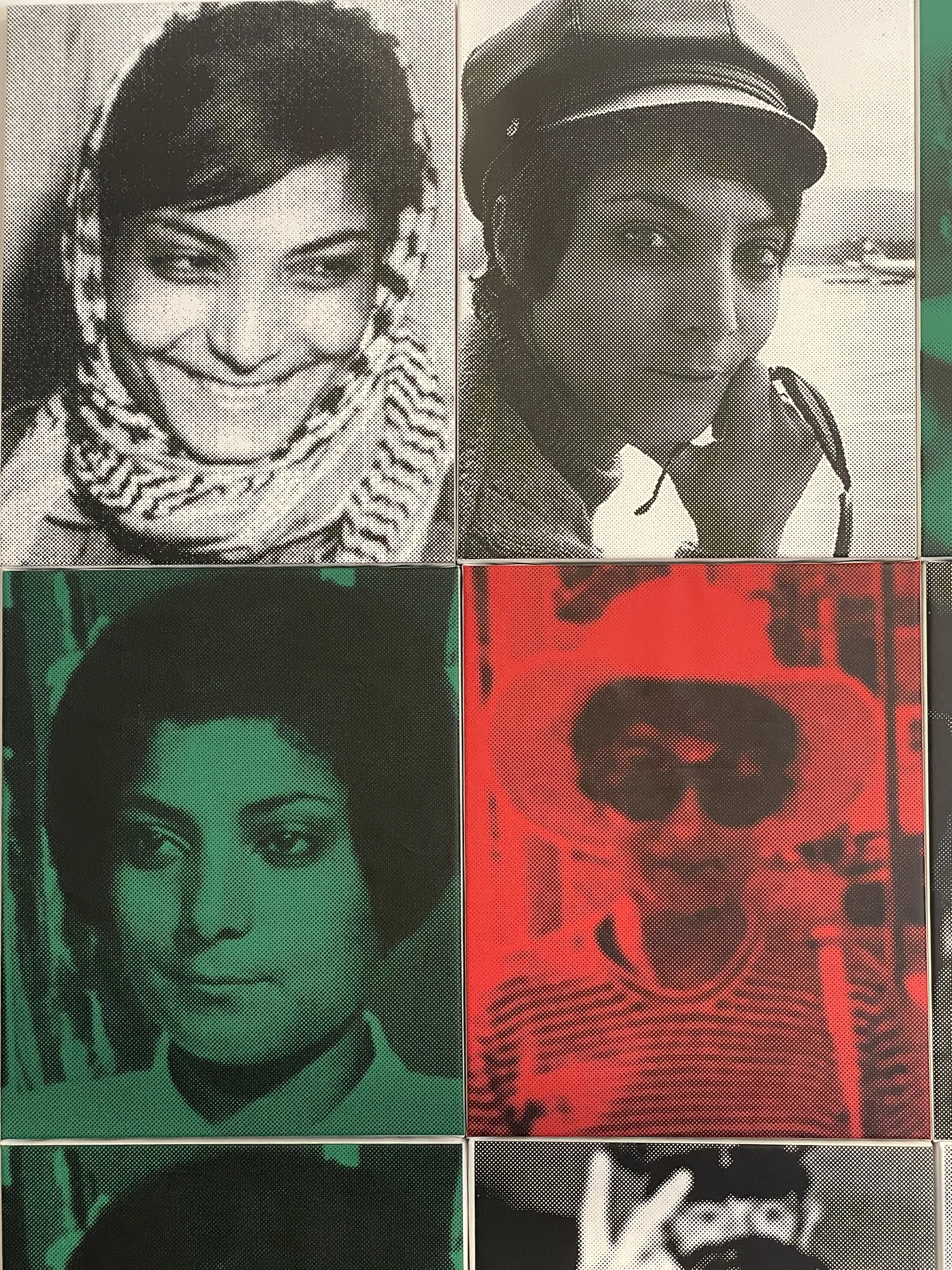 Nine Leilas, 2025 Acrylic and screen print on linen, 9 canvases (each): 20” × 16” Installation view: 60” × 48”